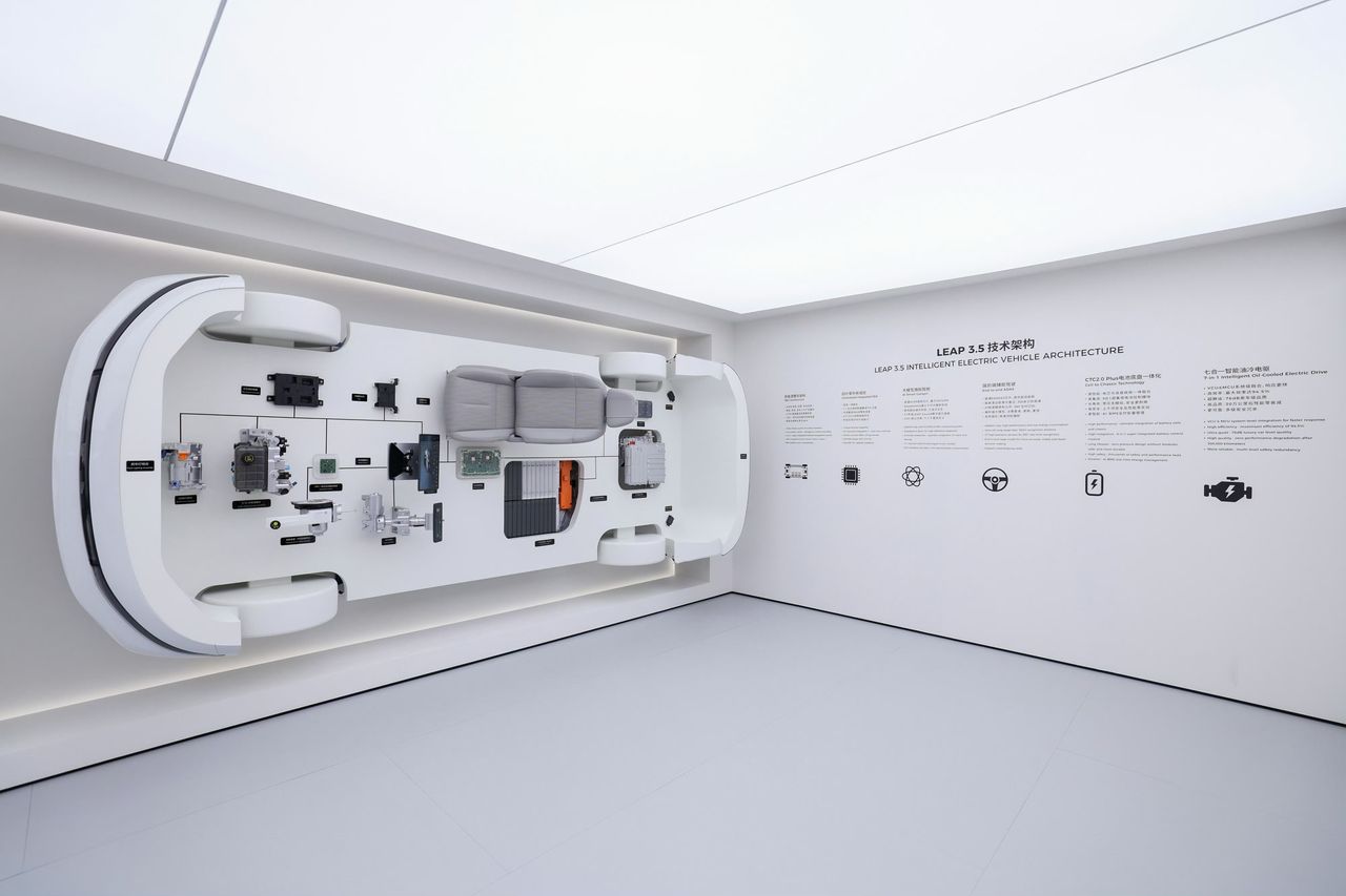 Platforma LEAP 3.5 představuje nejpokročilejší konstrukční základnu značky Leapmotor. Využívá super-integrovanou central-domain architekturu, která spojuje všechny hlavní systémy vozidla do jednoho výkonného jádra – od řízení podvozku a pohonu až po interiér a pokročilé bezpečnostní funkce. Díky vyšší integraci se snižuje počet kabeláže i modulů, což vede k vyšší efektivitě, nižší hmotnosti a rychlejšímu zpracování dat. LEAP 3.5 zároveň podporuje pokročilé autonomní funkce, LiDAR senzory i výkonnější výpočetní hardware pro budoucí aktualizace OTA (Over-The-Air).